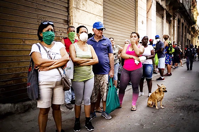 Giống như miền Bắc VN trước 1975, và “xuất cảng” vào miền Nam sau ngày “giải phóng”, xếp hàng đã trở thành một phần bản sắc của người Cuba. Người ta mất từ 4 đến 8 tiếng mỗi ngày để chờ mua một ổ bánh mì, vài quả trứng hoặc một ít thịt gà theo định mức của sổ tem. Nhiều người xếp hàng từ 2-3 giờ sáng, hoặc thuê người khác xếp hàng. Cãi vã, chen lấn, tay trong tay ngoài, chợ đỏ chợ đen là chuyện cơm bữa.