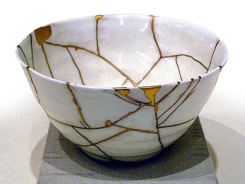 Đúng vậy đó. Ở Nhật, khi một cái bát bị nứt vỡ, họ dùng vàng gắn lại những mảnh vỡ để tạo thành một tác phẩm nghệ thuật mới. Người Nhật tin rằng, khi một thứ gì đó từng bị tổn thương và mang trong mình một lịch sử, nó sẽ đẹp hơn. Vì thế, thay vì vứt một cái bát vỡ đi, họ sẽ gắn lại những mảnh vỡ bằng vàng. Thay vì tìm cách che giấu đi những vết nứt vỡ, họ dùng vàng để làm chúng nổi bật lên như một cách để ca tụng và biến chúng thành điểm nhấn của cả chiếc bát.