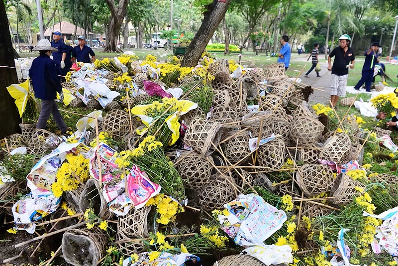 Khoảng hơn 10 năm trở lại, những người bán bông Tết nếu không chở cây quay lại vườn thì họ ra sức đập phá những chậu bông, chặt phá không thương tiếc những nhánh mai, nhánh đào nhằm mục đích không cho bất cứ ai có thể lượm bông bỏ đi đem về nhà.