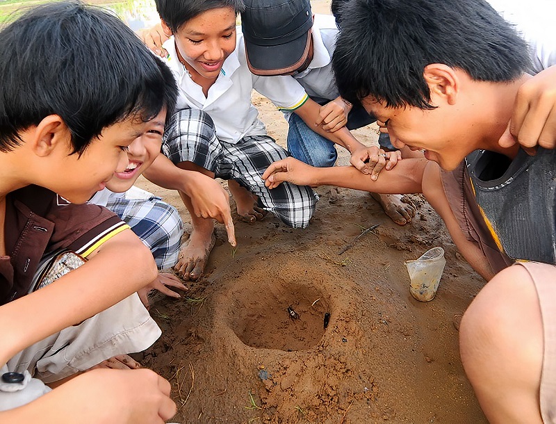 Con nít ở xứ nghèo mà, đứa nào không mũi dãi lòng thòng, mặt mày tèm lem tuốt luốt, ăn chưa đủ no, mặc chưa lành lặn, có đâu mà dám nói gì tới ba cái trò chơi mắc tiền như mấy xứ văn minh. Hồi đời tui cũng nhảy cò cò, thẩy đáo lạc bằng miểng ngói miểng sành, chơi u hấp, cút bắt trốn, cất nhà chòi, thả diều, đá dế, đá gà bằng cỏ chỉ, đá cá lia thia, đẩy cây, bắn chim bắn cò, nắn con chim tu hú…