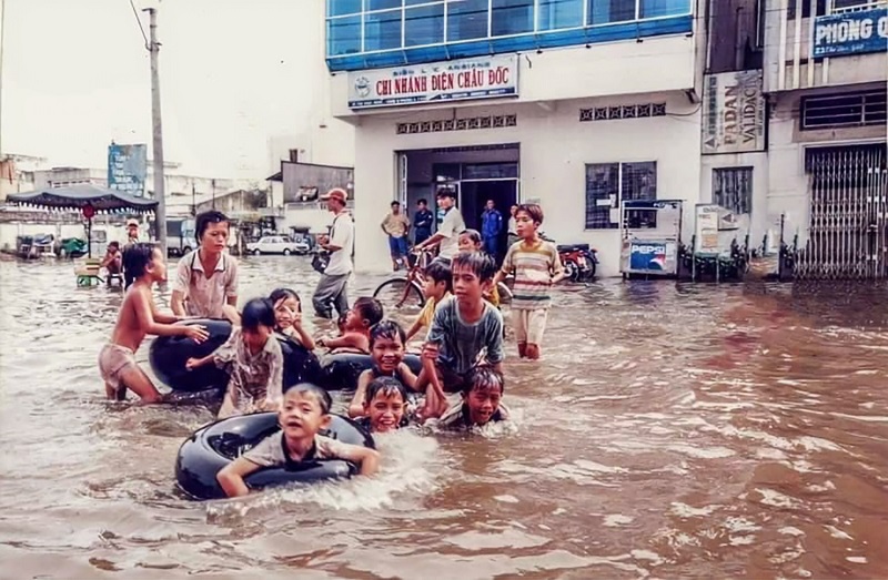 Má bây nay già quá là già. Chị Năm, năm nay cũng 85 tuổi rồi, không biết chỉ còn nhớ trong đời chỉ từ hồi còn nhỏ tới bây giờ đã trải qua bao nhiêu mùa nước lụt lớn như năm này. Riêng cậu Hai thì ngồi nhớ lại coi vậy mà cũng bộn. Hồi mấy đứa bây còn nhỏ xíu, năm đó cái chợ Long Xuyên vậy mà còn ngập lút. Năm đó, từ ngã tư đèn bốn ngọn chạy vô hương lộ đi Núi Sập, nước ngập tới đầu gối. Hai cháu còn nhớ chỗ ngã tư này hông? Hồi đó có cái gò cầm trâu của ông Tư Dừa đó mà. Chỗ gò này có dựng cái bảng quảng cáo hình ông Chà răng trắng hếu nhờ xài kem “Hy-Nốt” đó mà. Còn bên kia là trường trung học Phụng Sự. Dọc theo đường Tự Do là trường tiểu học Mỹ Phước của ông “Tám Thìn”. Năm đó cậu Hai nhớ mấy trường học này nước ngập ráo trọi. Mà hồi đó cũng đâu khổ như bây giờ vì miệt ruộng mình còn làm lúa mùa. Lúa mùa thì nước tới đâu lúa nhóng lên tới đó chứ đâu có đứng chết trân chịu trận như lúa thần nông… Thành ra, không khổ vì nạn nước lụt là vậy, chỉ trừ có trận bão năm Thìn.