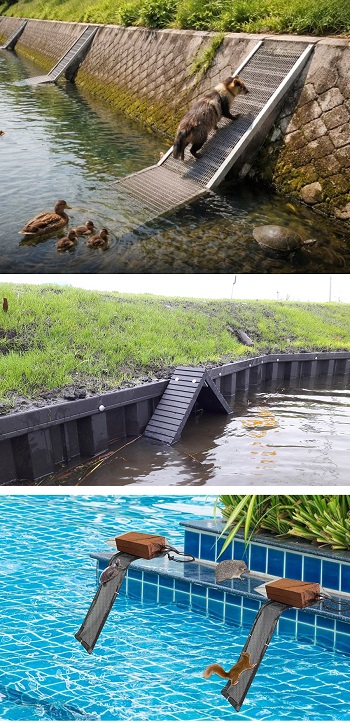 Đây là nỗ lực tập thể của các kỹ sư nông nghiệp và chính quyền Nhật, xuất phát từ các nghiên cứu thực tế sau đợt cải tạo ruộng đồng lớn những năm 1960-1980. Qua nhiều nghiên cứu, họ chọn ý tưởng vô cùng giản dị: Thiết kế những đoạn dốc nghiêng thoai thoải 30 tới 50 độ thay cho góc 90 độ trước đó, dán thêm vật liệu nhám hoặc trồng những vật cản tự nhiên (cọ, rêu…). Với nguyên lý tăng lực ma sát và giảm góc nghiêng, con vật dễ dàng bám víu và tự leo lên bờ an toàn, có cơ hội tập… gym.