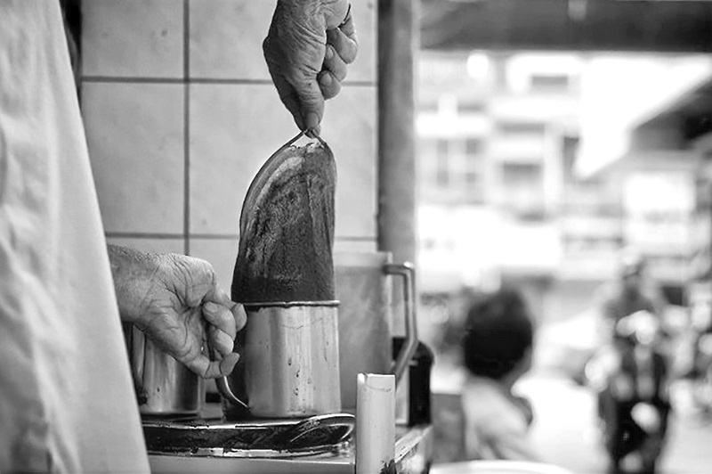 Chiếc vớ chứa cà phê nầy sau đó được nhúng vào siêu nước đang sôi, lấy đũa khuấy khuấy vài dạo xong đậy nắp siêu lại rồi… “kho” độ năm mười phút mới có thể rót ra ly mang ra cho khách. Chính cái “quy trình” pha chế thủ công đầy phong cách Tàu nầy mà dân ghiền cà phê còn gọi nó là cà phê kho bởi chỉ ngon lúc mới vừa “kho nước đầu”. Nếu ai đến chậm bị kho một hồi cà phê sẽ đắng như thuốc Bắc.