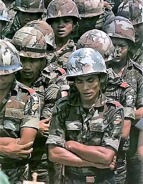 Binh sĩ của TĐ 1 TQLC cầu nguyện trước khi lên trực thăng đưa họ tới tham chiến tại Triệu Phong. (Hình- BS ĐẶng Vũ Vương sưu tầm)