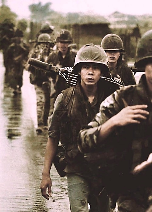 Chiều đang xuống dần, những người lính cũng vội vã sửa lại hầm hố, đào giao thông hào cho sâu thêm, người chết và thương binh tăng thêm làm nặng thêm mối âu lo của Tiểu đoàn, tôi chạy vội ra phía hai đệ tử đang ngồi chong mắt nhìn ra ngoài tuyến, trên tay hai đứa có hai cây M16 và dây băng đạn từ lúc nào (hai đệ tử pháo binh mang máy cho ông thầy thường không đem theo súng).