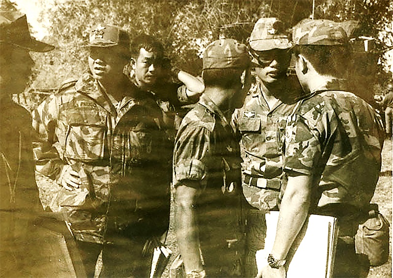 Trung tá Nguyễn Đình Bảo đeo kính ở giữa