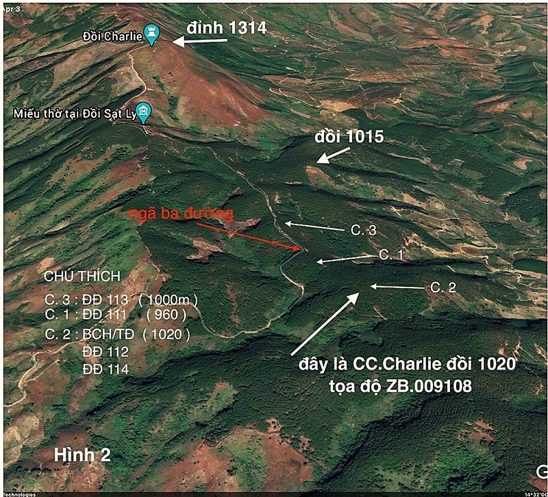 Nếu trên Quốc lộ 14, tại Dakto chúng ta sẽ phải rẽ trái (hướng Tây), rồi mất thêm 49 cây số nữa mới tới được Charlie tại thị-trấn Sa-châu. Nhưng khởi hành từ Kontum chúng ta đi, thì tới ngã ba Trung-chính chúng ta rẽ trái (hướng Tây) và chỉ mất hơn 20 cây số là đến Charlie (Sa-châu) mà thôi. Như vậy, nếu ta lấy 3 điểm Kontum, Dakto và Charlie, thì chúng sẽ tạo ra một hình tam-giác mà Charlie là đỉnh có cạnh đáy là Kontum và Dakto.