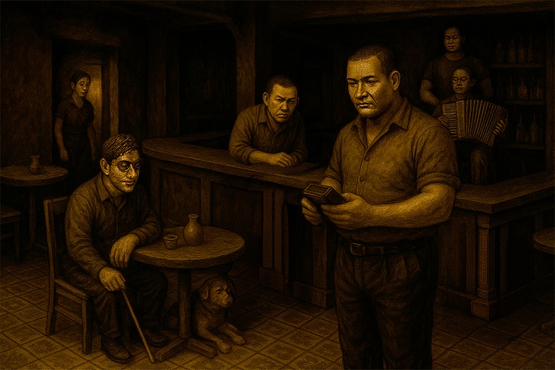 Đúng vào lúc ông Năm móc chiếc bóp đầy ắp giấy năm trăm ra thì đèn điện vụt tắt. Quán rượu tối như bưng lấy mắt. Gã nhạc sĩ phong cầm dạo một điệu dồn dập. Lão chủ quán rên lên: