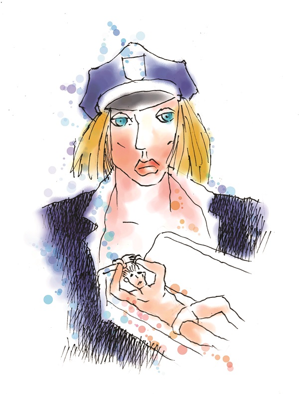Cô cảnh sát cười.