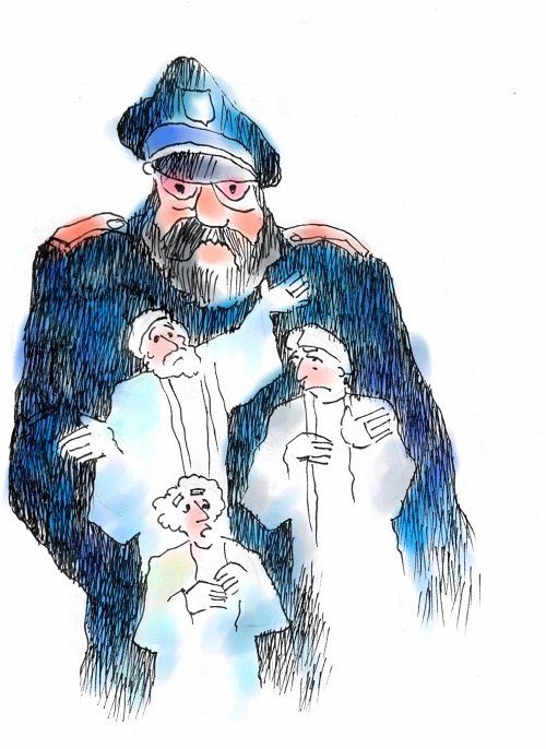 Abdul ngồi khoanh tay, nhìn anh cảnh sát… Anh ta bỗng chép miệng, phì phì. Mở con mắt trắng, dưới cặp mày đen to bản, nhìn Abdul. Anh cảnh sát đưa hai tay ngang ra, xương kêu cái rắc!