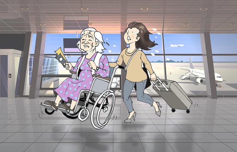 – Con nó lo là phải rồi. Tuổi chị ra phi trường ngồi xe lăn vừa đỡ mệt vừa chắc ăn, tốn vài đồng tiền tip họ đưa đón tận cổng máy bay.