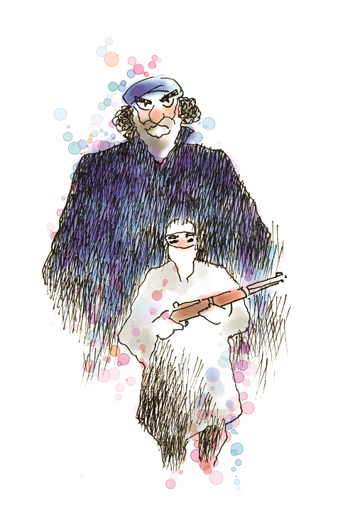 Lính rừng quay lại. Người phụ nữ Á Rập trong áo choàng trắng, bịt mặt, ném khẩu CKC, loại súng trường của Liên Xô, xuống đất. Chị đưa tay gỡ mạng bịt mặt, bước tới.