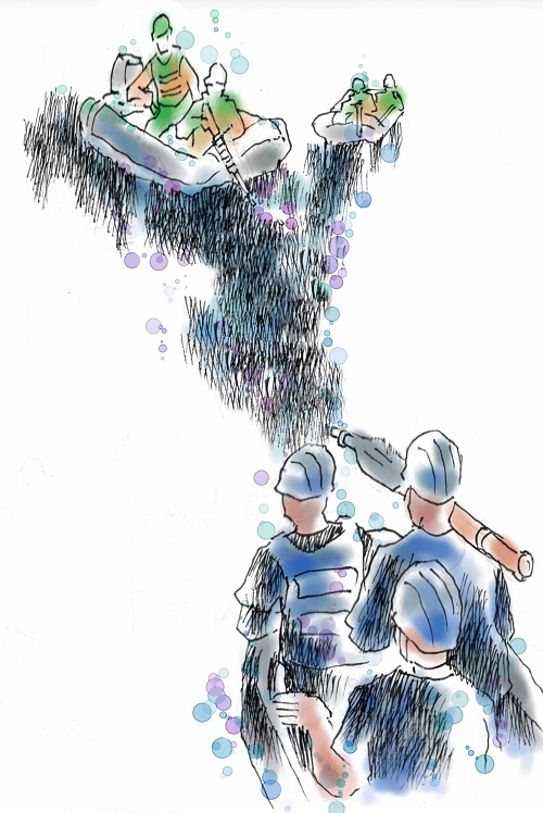 Trái đạn trúng ngay mặt nước, chiếc xuồng cao su dựng đứng, tiếng máy rú lớn.