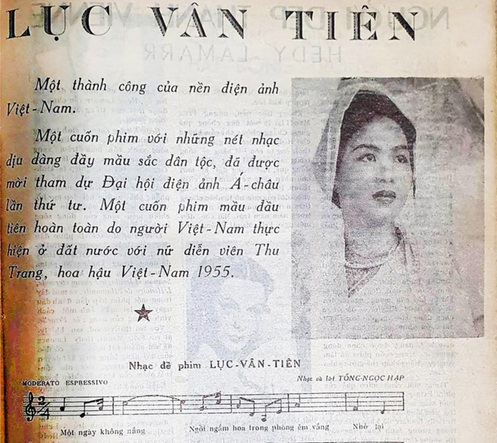 Một quảng cáo trên báo Sài Gòn phim điện ảnh VN Lục Vân Tiên của dạo diễn Tống Ngọc Hiệp và hoa hậu Thu Trang trong vai chính (Ảnh: Internet)