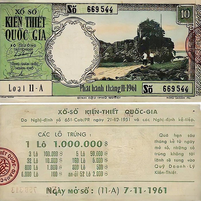 Vé số kiến thiết quốc gia phát hành tháng 11/1961 khi đó xổ số một tháng một lần (Ảnh: Internet)