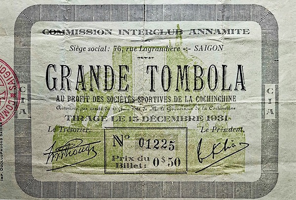 Vé số trúng thưởng Tombola thời Pháp sổ ngày 15/12/1931 (Ảnh: Internet)